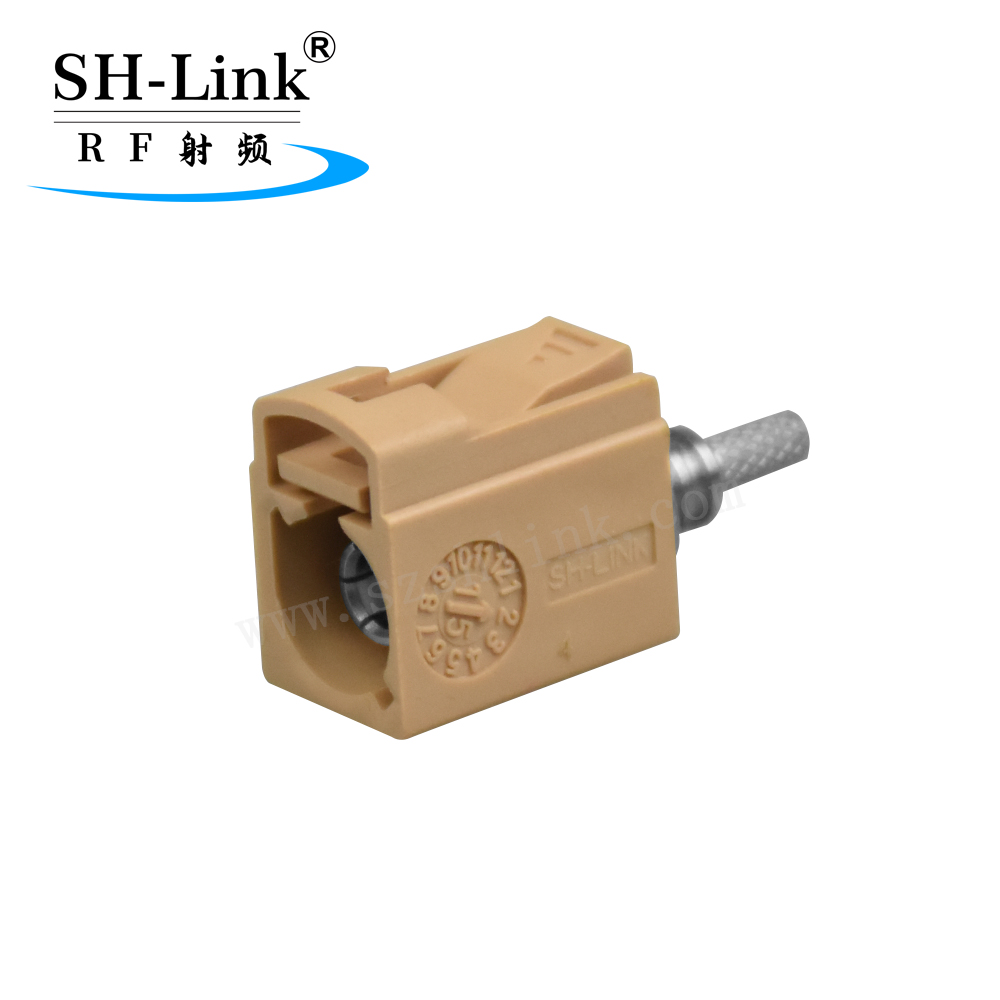 Matériaux du connecteur Fakra : Boîtier : Laiton nickelé ; Broche centrale : Cuivre au béryllium plaqué or