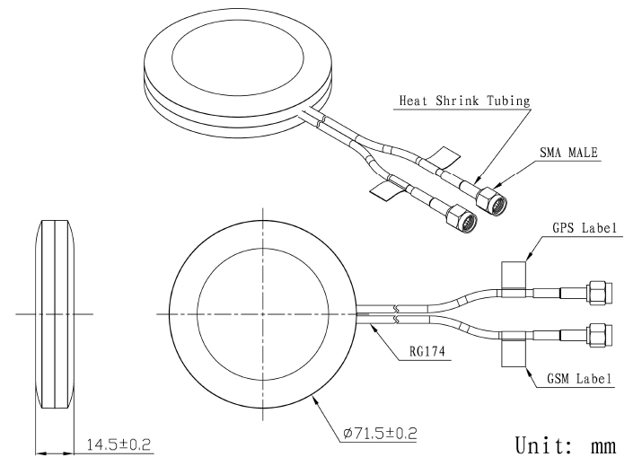 Leírás: Ez a járműre szerelt GPS+GSM kettős felhasználású antenna főként járműpozicionáló terminálokban, jármű távoli diagnosztikai rendszerekben és egyéb berendezésekben használatos a járművek műholdas pozicionálásához, távoli adatfeltöltéshez és mobilkommunikációs funkciók eléréséhez.