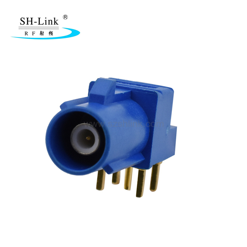 Il connettore FAKRA maschio per PCB (90°) tipo C è utilizzato per la trasmissione del segnale in dispositivi RF di base come radio AM/FM e sistemi Bluetooth per veicoli. È inoltre compatibile con radio satellitari per veicoli, moduli di diagnostica remota per veicoli e sistemi di infotainment per veicoli.