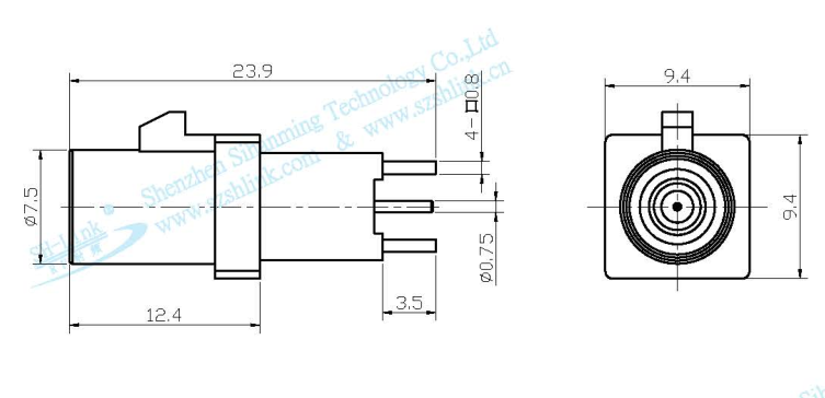 커넥터 재질: 하우징: 니켈 도금 황동; 센터 핀: 금도금 황동; 절연체: PTFE; 셸: PA66+30%GF