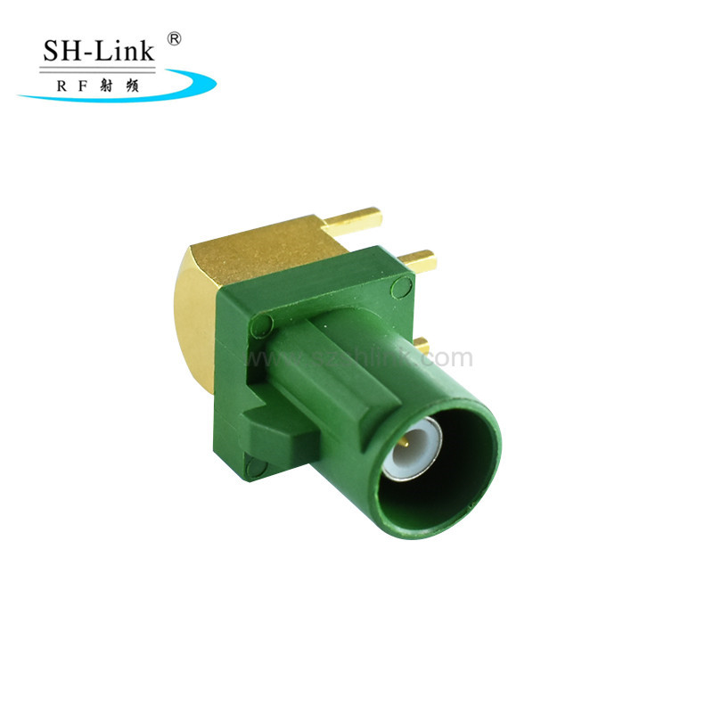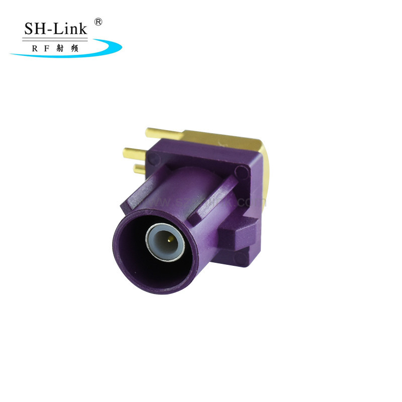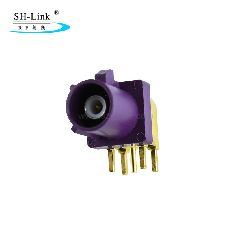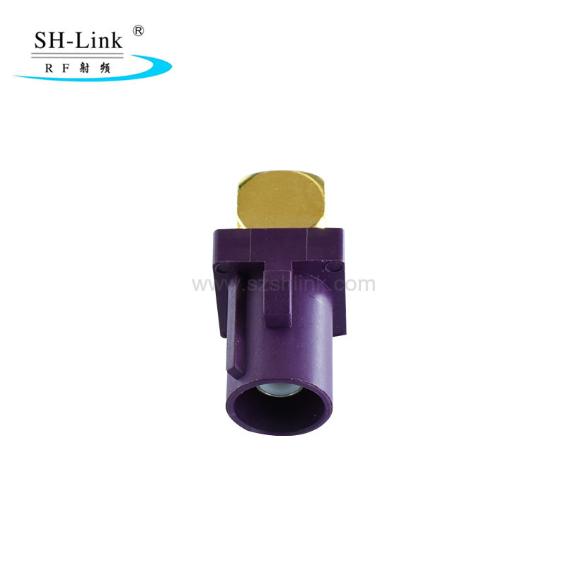 The FAKRA Male Connector for PCB (90°) Type D is compatible with PCB motherboards for in-vehicle LVDS cameras, rearview cameras, and other imaging devices; GPS navigation, car radios, and other audio-visual navigation systems; as well as in-vehicle Bluetooth, Wi-Fi, and vehicle networking devices such as remote fleet management systems.