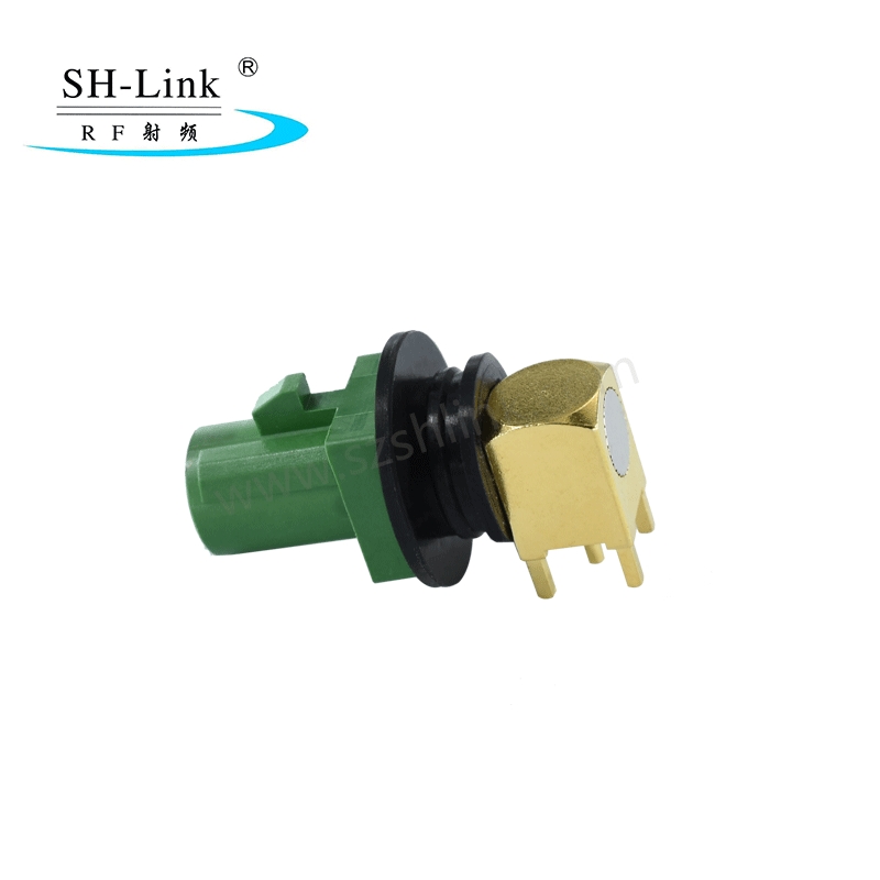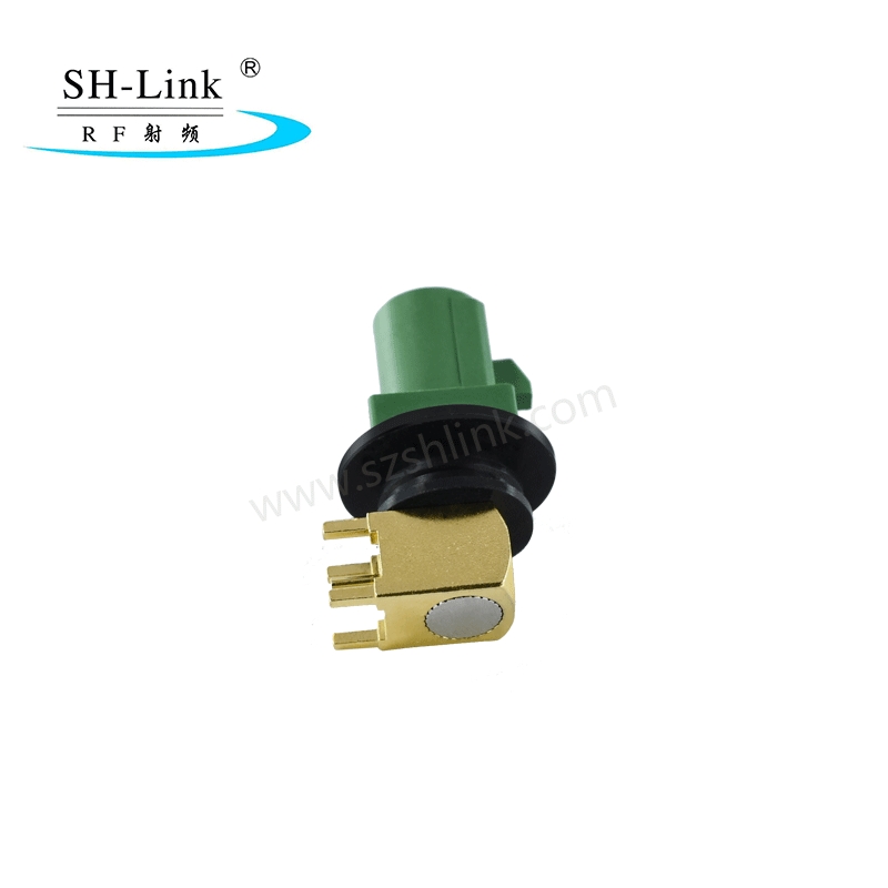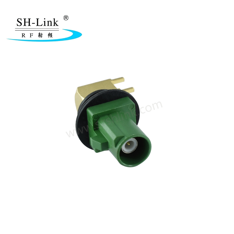 Fakra PCB Angled Male Connectors (90 degrees) Type E are compatible with car radios, GPS navigation, satellite broadcasting and other audio-visual navigation devices; rearview cameras and electronic rearview mirrors in ADAS systems; and PCB boards of telematics equipment, used for stable transmission of corresponding radio frequency and video signals.