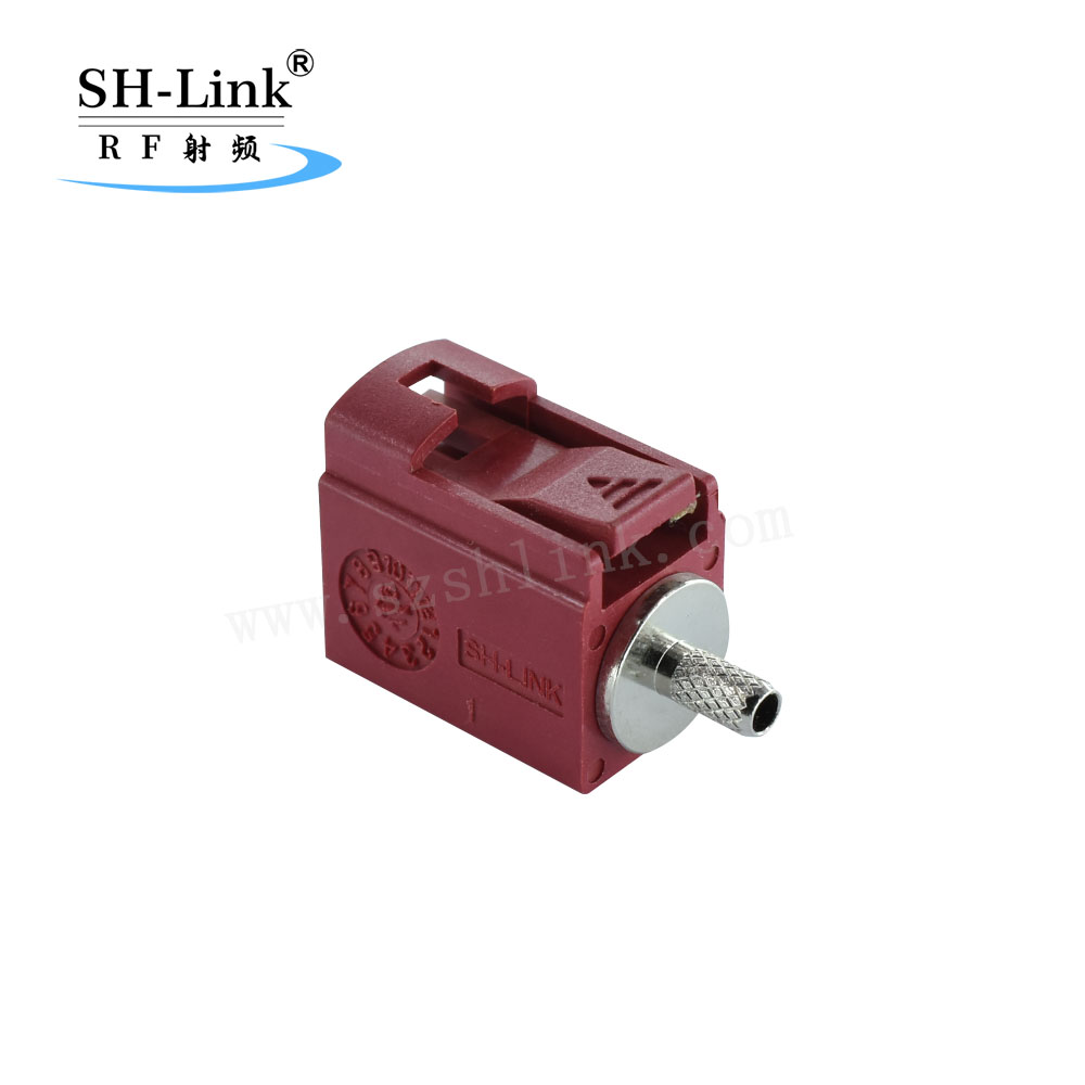 The FAKRA Female Connector (Short) L-Type is primarily used in automotive Advanced Driver Assistance Systems (ADAS), vehicle networking systems, infotainment, GPS navigation, and cameras. It can also be used in some electronic devices requiring radio frequency signal transmission. Compatible with RG58/LMR200/LMR240/RG174/RG316 cables.