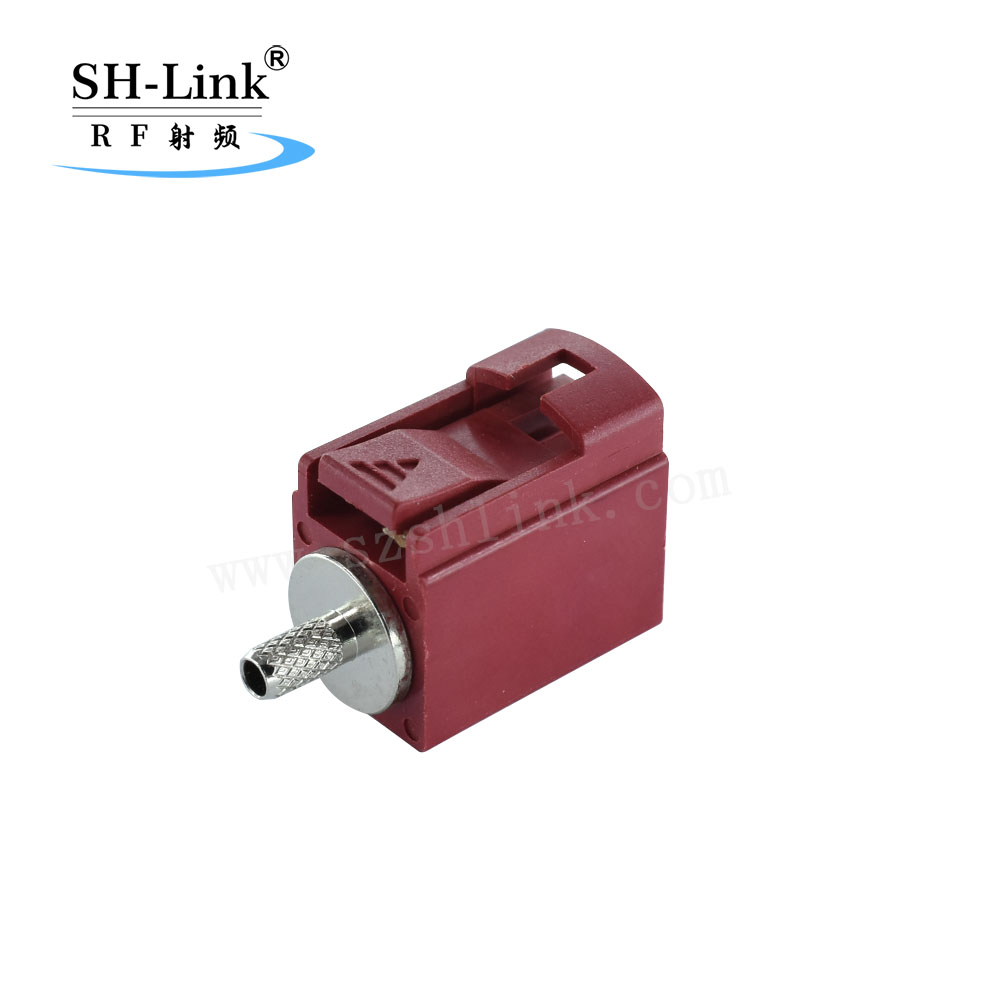 Connector Materials: Shell: Nickel-plated brass; Center Pin: Gold-plated beryllium copper; Insulator: PTFE; Outer Shell: PA66+30%GF; Copper Tube: Nickel-plated brass; Clamping Ring: Beryllium copper. This FAKRA connector is available in 14 models: A, B, C, D, E, F, G, H, I, K, Z, L, M, N. Each size corresponds to a different color, and different sizes are incompatible.